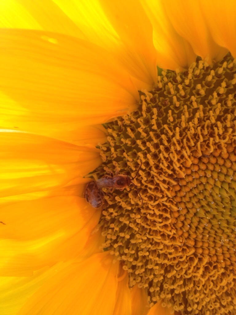 I get into a zone while focusing on photography. I almost feel like I am at one with the universe much the same feeling I get while stargazing or communicating with animals. Today I was drawn to the gardens at the many places I pet sit. I love the sunflower. When I photographed it tonight I found ten tiny bees on the seeds. I photographed many dragonflies today too. I know in some cultures dragonflies represent spirits of loved one. I had about fifty dragonflies swirling around me at one point.
