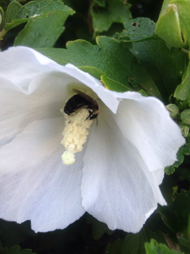 As always I enjoy photographing bees and flowers and captured a bee in the white flower.