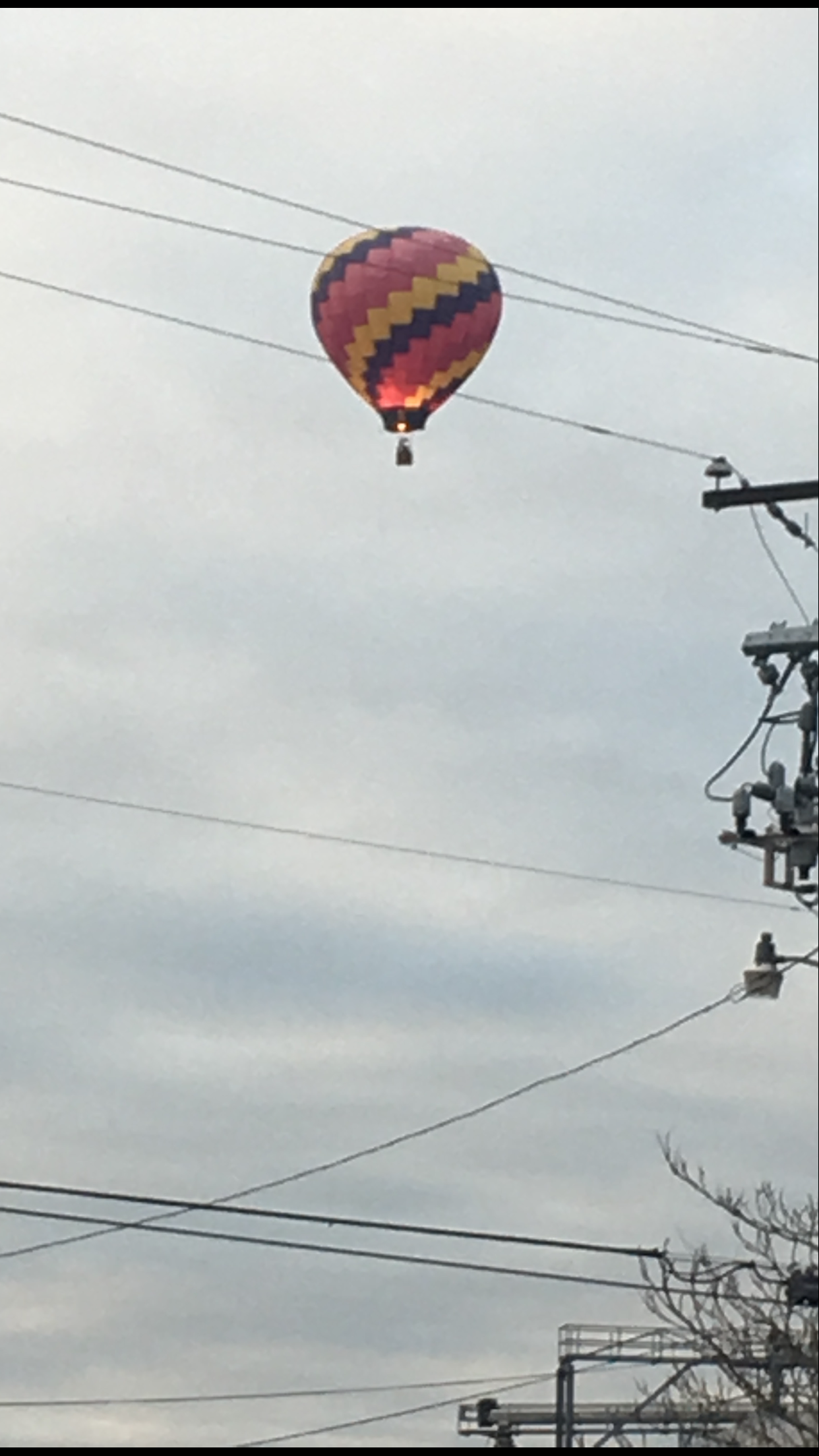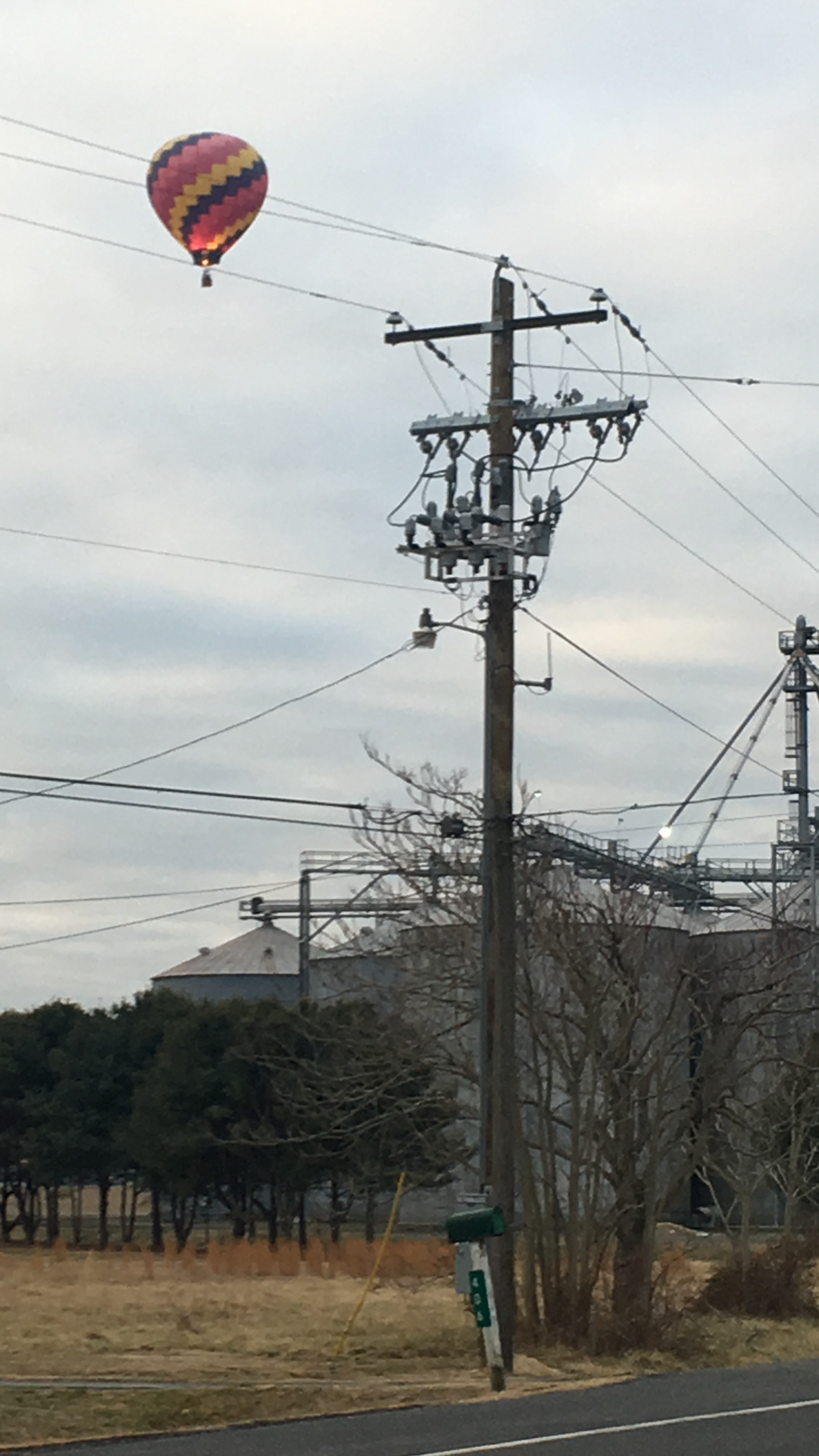 The balloon was never in any danger in spite of my taking the photo with silos and electric lines in the shot.