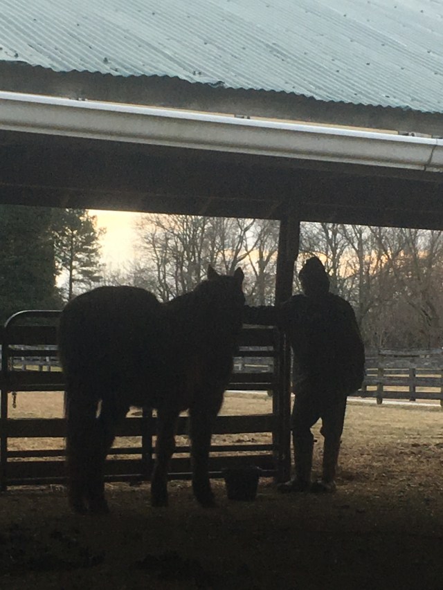 So this morning when I rolled out of bed to get ready for the farm I found Mike already dressed and waiting in the living room for me. We put the dog in her kennel and headed for the car. As we drove down the drive Mike made his declaration about a good day. As we drove we enjoyed the sunrise and the way it played over the clouds. At the farm Mike takes extra time to make sure the elderly ewes get their fair share of corn and hay. He stands like a linebacker with the bucket of grain wedged between his legs while he fends off any ewe who is not elderly as the rest of the flock gets fed in bins on the ground. After the sheep were cared for we headed up to the horses and chickens. Mike fed the chickens while I filled water troughs. We watered the greenhouse last and decided to head to Best Buy to pick up an item we ordered. After a jaunt at Best Buy and Michaels craft store (Mike bought me a journal and a cool coloring book) we headed to the bank. After the bank we stopped a bagel place I’ve been wanting to check out. It was amazing! A wide variety of bagels and a great family place. It was the first place we have ever gone to that Mike said I want to come back here I really like it and feel good when here. That is a rare thing as sometimes Mike feels vulnerable when out in public. We drove home through Amish country and enjoyed quiet time until the afternoon chores at the farm.
