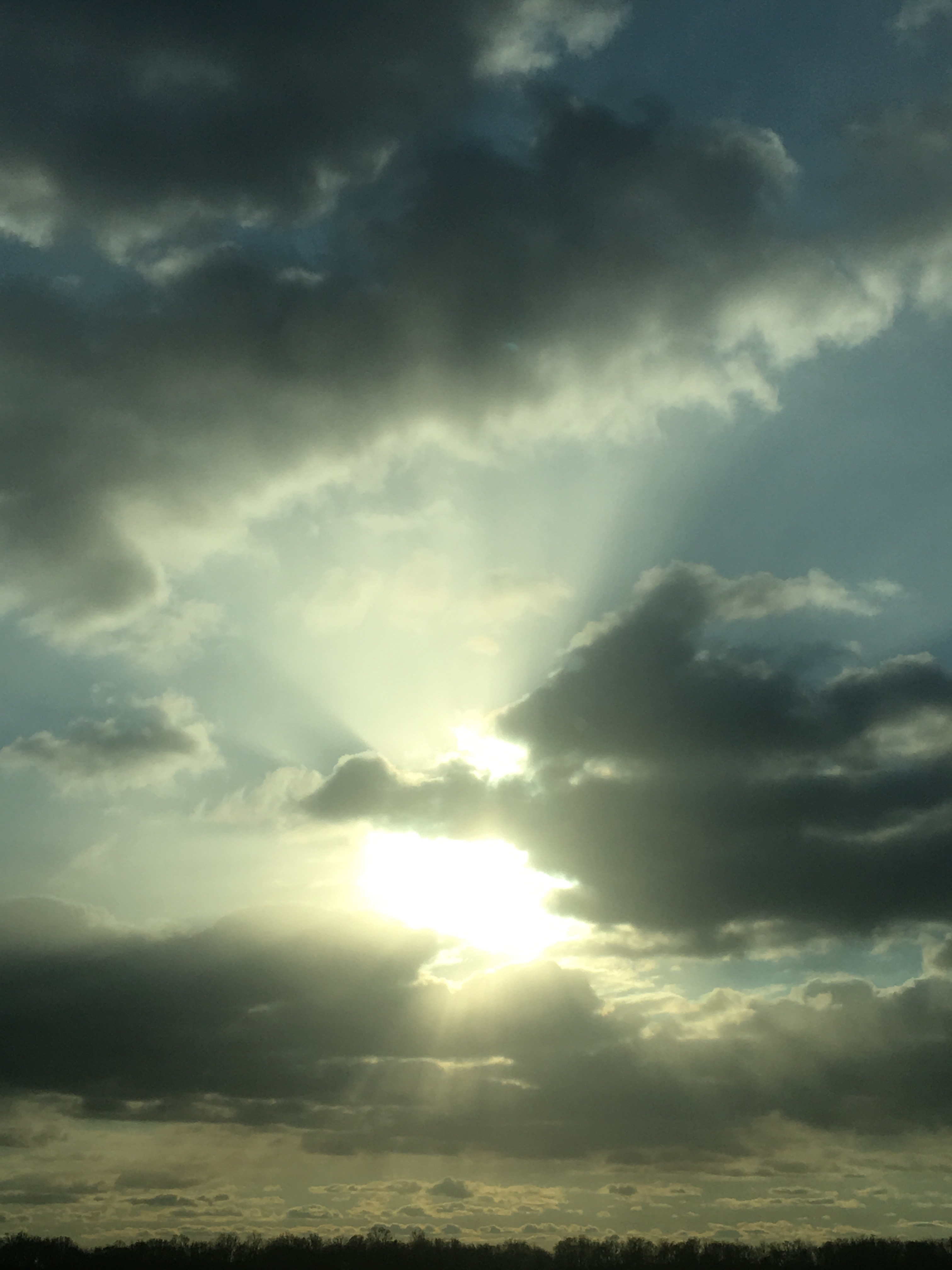 Driving to work this afternoon I was treated to the ever changing colors of the light dancing across the clouds. The day started off with the snow showers and ended with bright sunshine.