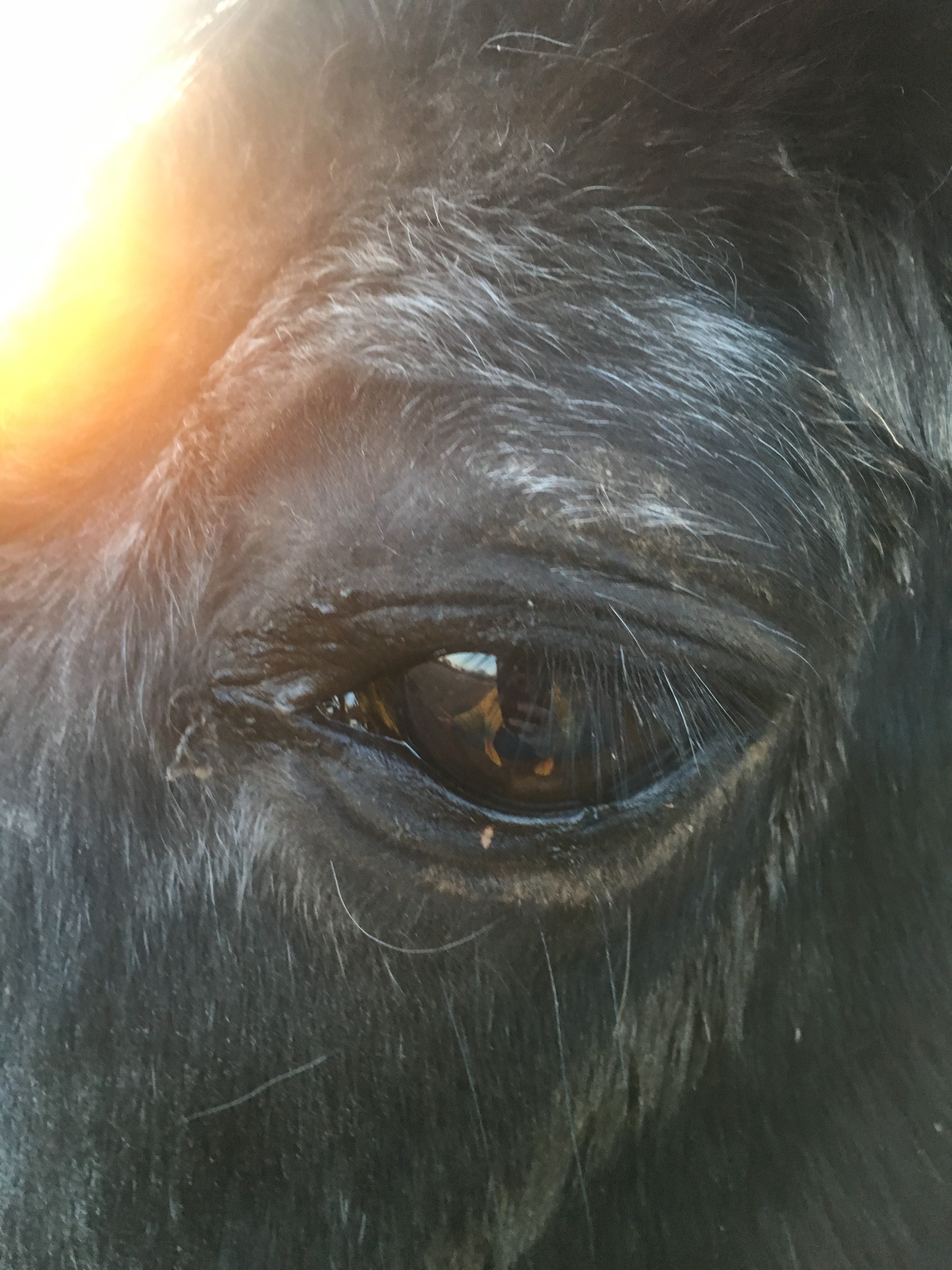 They say the eyes are the window to the soul. I have included with the hay barn photos a photo of Captain and me reflected in his eye. I love the old guy.