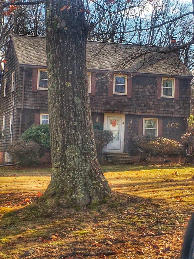 This past weekend Michael, my Mom and I stayed in my hometown of Marlborough MA for my family’s Christmas celebration. Sunday morning after breakfast we drove around Marlborough showing Michael where we lived and some of the schools I attended. Mom enjoyed remembering too. We drove by our old home. The woods behind it are thankfully still undeveloped. I sledded down the back hill many times and explored the plant and animal life there. We went by the elementary school which has been rebuilt since I was a student. I finally looked up the soldier whom the school is named after. I don’t ever remember learning about him in school but I may have forgotten. We drove downtown which has not changed much other than some of the stores. The town has expanded and grown and I am happy I grew up there but equally as happy to live where I am living now. Delaware is so very flat compared to Massachusetts hilly landscape. Delaware also has a lack of rocks and boulders that Massachusetts has in abundance.
