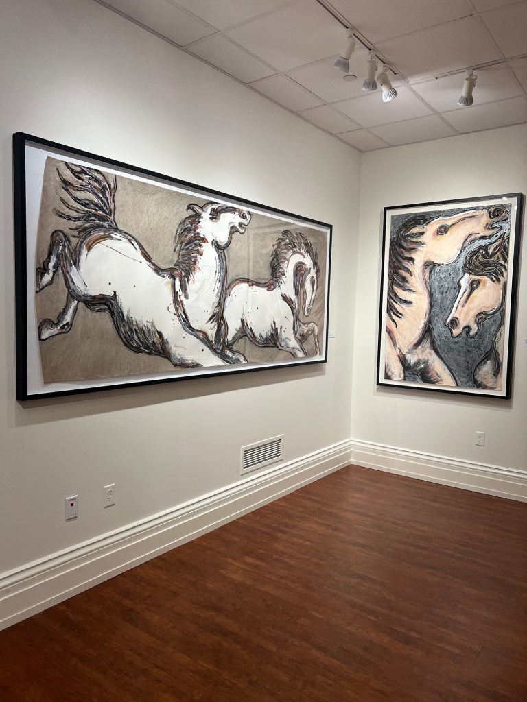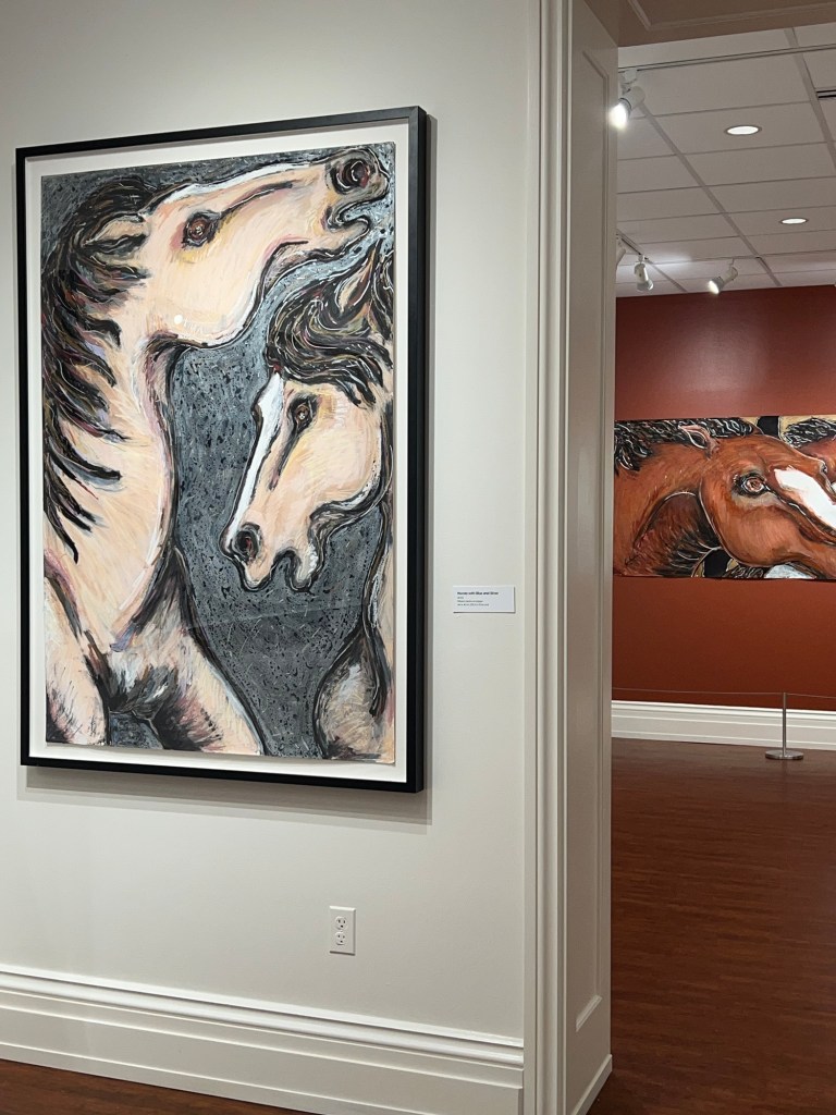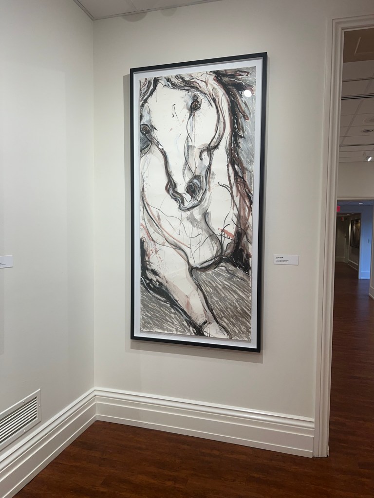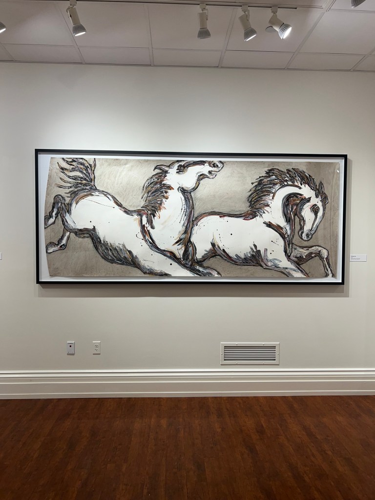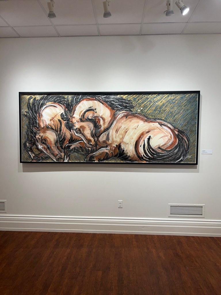 Today’s exhibit featured an artist, Rebecca Raubacher who used mixed media to produce the horses and other animals seen. I like when I can view the artists sketch books to see how they develop an idea. All in all it was an enjoyable hour. I drove home and could tell storms were coming.