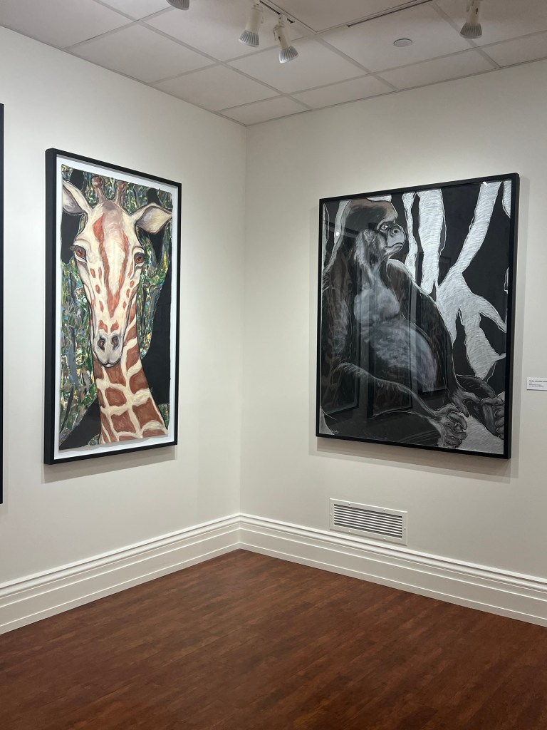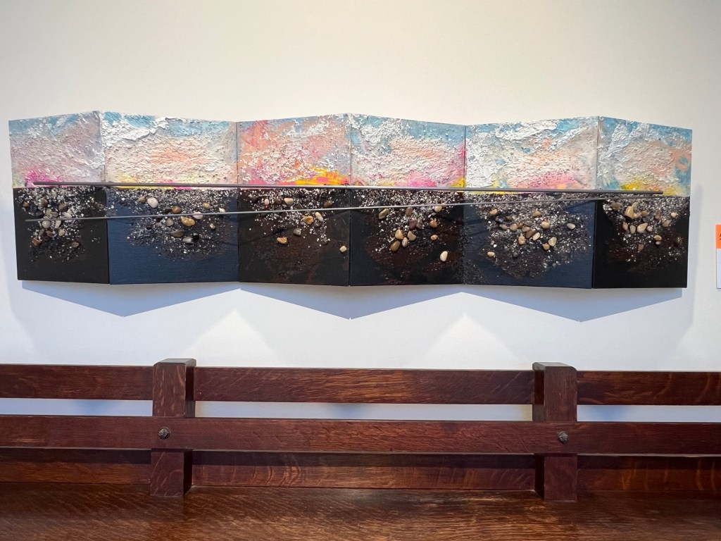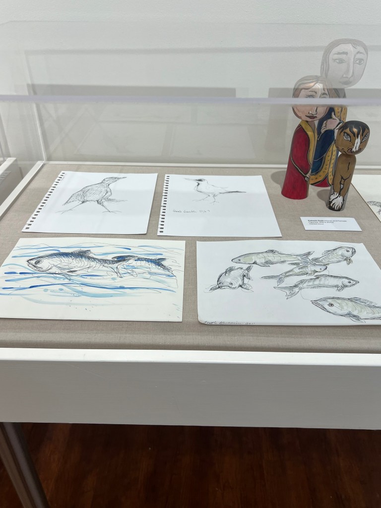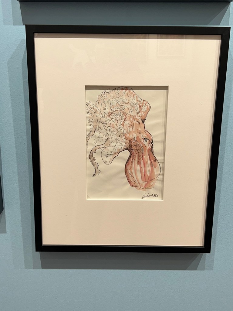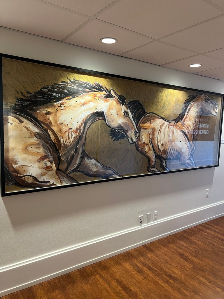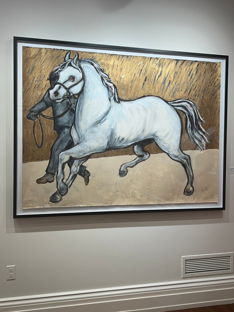 Today’s exhibit featured an artist, Rebecca Raubacher who used mixed media to produce the horses and other animals seen. I like when I can view the artists sketch books to see how they develop an idea. All in all it was an enjoyable hour. I drove home and could tell storms were coming.